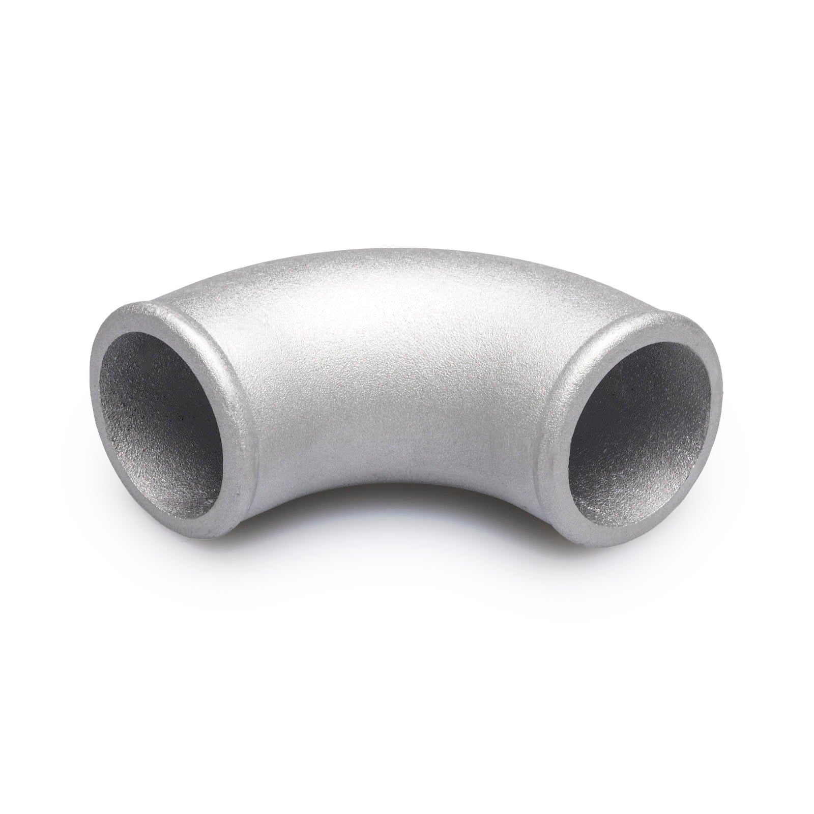 This cast aluminum bend is perfect for limited space, such as in the engine compartment at the turbocharger compressor outlet or intercooler connections, throttle bodies, etc.... The cast aluminum bend has an extremely small radius and even has beads on both sides to allow hose mounting with silicone hoses. The bends have already been successfully tested in motorsports up to 3,5 bar boost pressure.