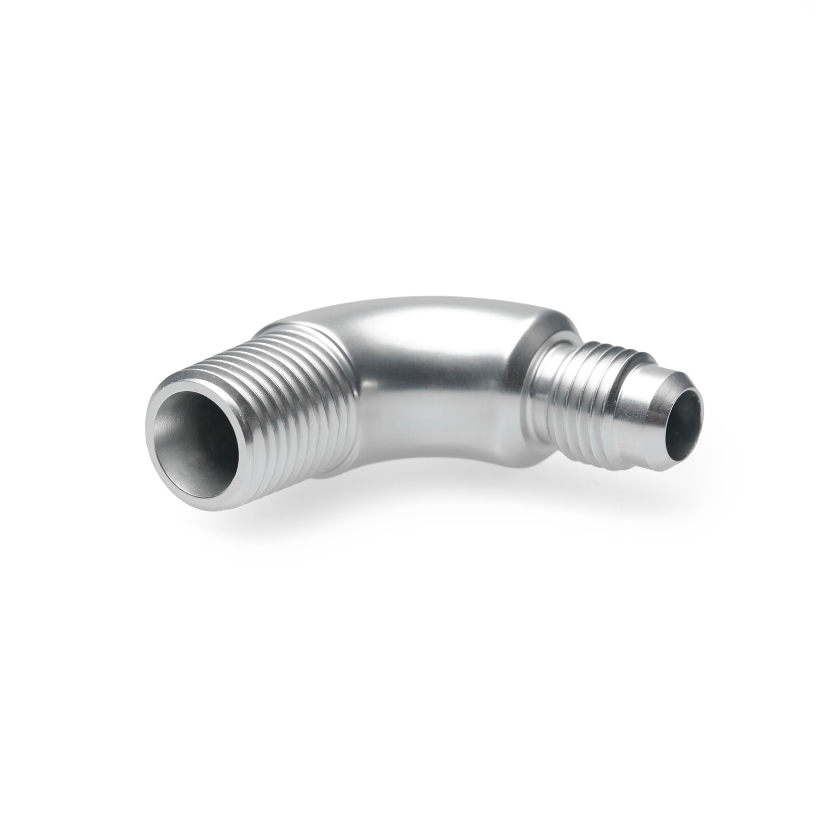 Aluminium adapter - 90 degree - Dash 4 male to 1/4" NPT male in silver