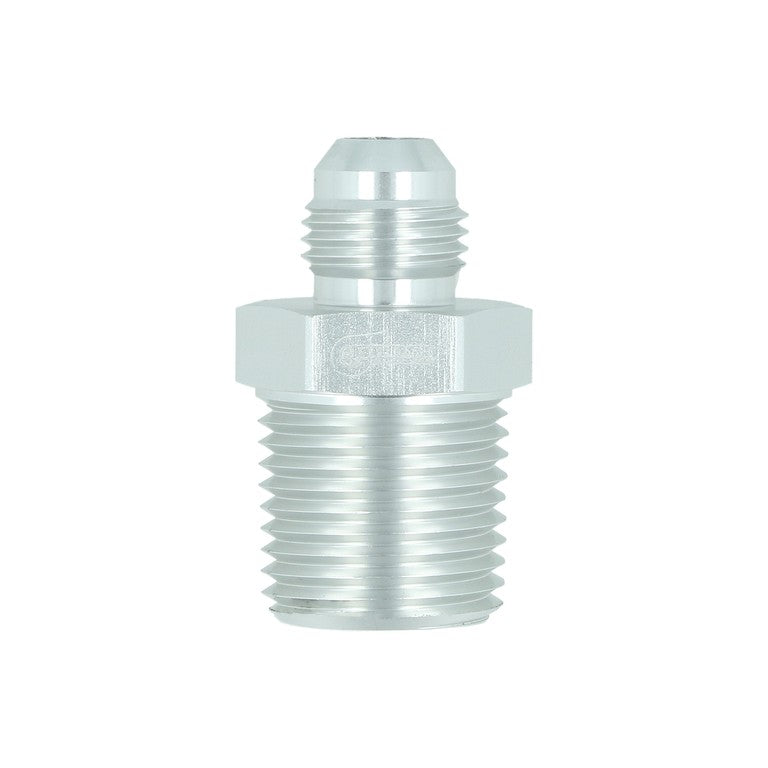 Aluminium adapter Dash 6 male to 1/2" NPT male in satin silver