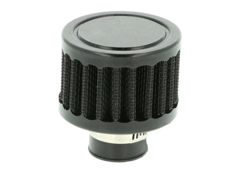 Small air filter in black for different applications; for example the crankshaft housing ventilation or an oil catch tank. Due to the entirely black color (as well filter wadding as silicone elements) this filter is more subtle than others and will not take away from the more eye-catching parts in your engine bay.