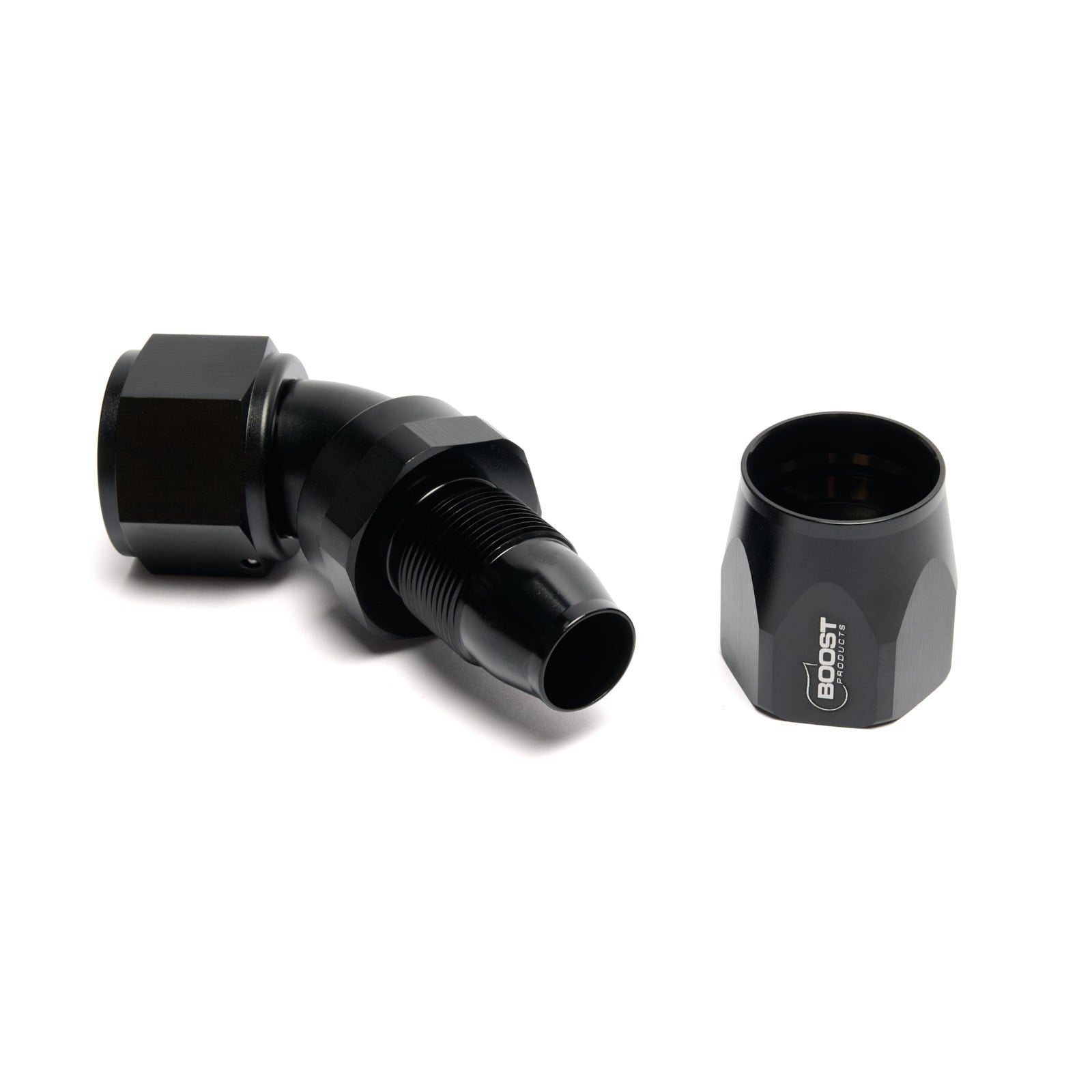BOOST products fittings, hoses and thread adapters are suitable for a wide variety of applications such as use on oil, water, and fuel lines and are resistant to E85 and methanol. The fittings and adapters are CNC machined from 6061-T6 aluminum and conform to U.S. specification AN d JIC industry standards. The matching hydraulic hoses to the fittings are available in different versions (nylon or stainless steel braiding, also with reinforced insert or as PTFE version). The self-sealing system originates from the defense and aerospace industries and has been successfully used in motor sports for decades. Thanks to the unique screw connections, the hoses are tight and pressure-resistant up to 650 bar (depends on size and type) without the need for press tools. All BOOST products hydraulic hoses were E85 and Methanol resistent. The hose fittings are screwed together with the matching hydraulic hoses.