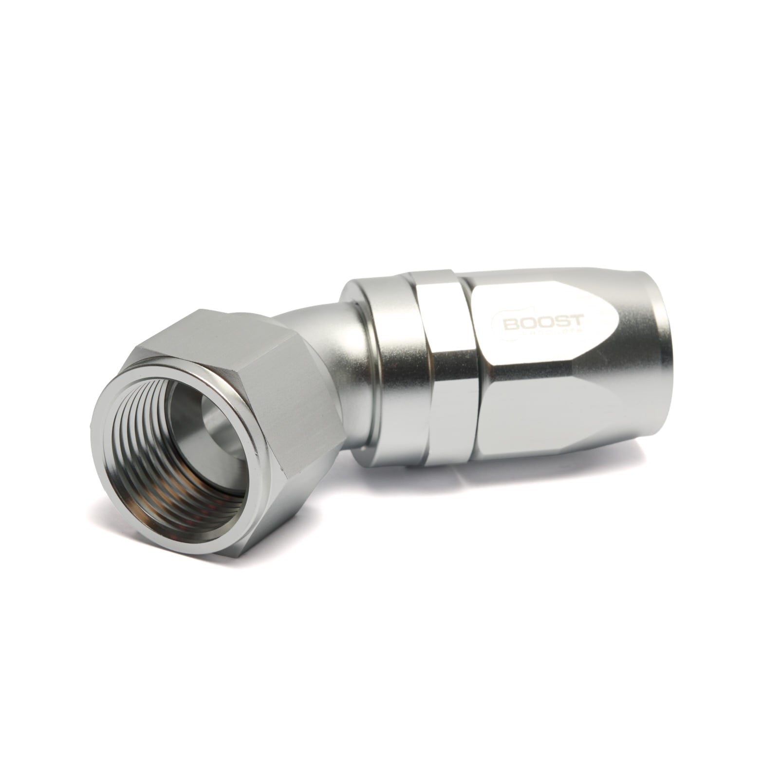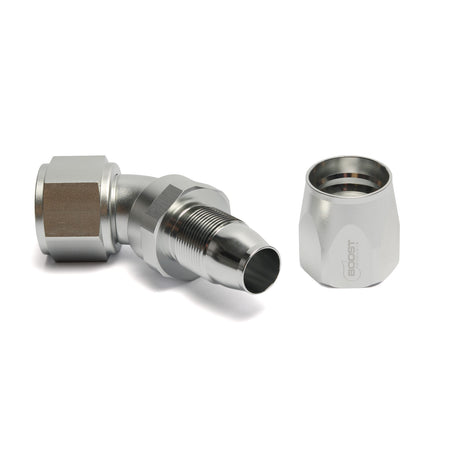 BOOST products fittings, hoses and thread adapters are suitable for a wide variety of applications such as use on oil, water, and fuel lines and are resistant to E85 and methanol. The fittings and adapters are CNC machined from 6061-T6 aluminum and conform to U.S. specification AN d JIC industry standards. The matching hydraulic hoses to the fittings are available in different versions (nylon or stainless steel braiding, also with reinforced insert or as PTFE version). The self-sealing system originates from the defense and aerospace industries and has been successfully used in motor sports for decades. Thanks to the unique screw connections, the hoses are tight and pressure-resistant up to 650 bar (depends on size and type) without the need for press tools. All BOOST products hydraulic hoses were E85 and Methanol resistent. The hose fittings are screwed together with the matching hydraulic hoses.