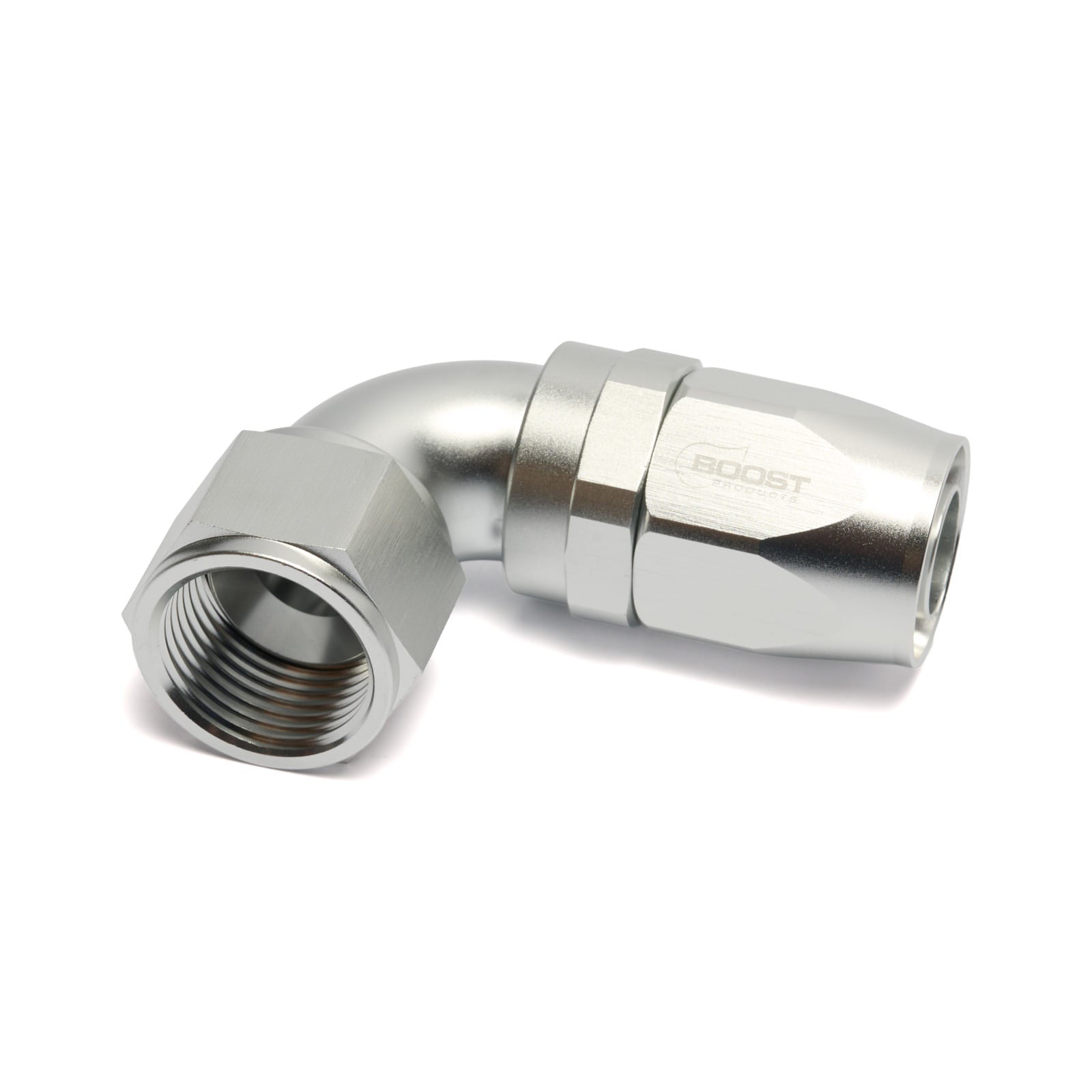 BOOST products fittings, hoses and thread adapters are suitable for a wide variety of applications such as use on oil, water, and fuel lines and are resistant to E85 and methanol. The fittings and adapters are CNC machined from 6061-T6 aluminum and conform to U.S. specification AN d JIC industry standards. The matching hydraulic hoses to the fittings are available in different versions (nylon or stainless steel braiding, also with reinforced insert or as PTFE version). The self-sealing system originates from the defense and aerospace industries and has been successfully used in motor sports for decades. Thanks to the unique screw connections, the hoses are tight and pressure-resistant up to 650 bar (depends on size and type) without the need for press tools. All BOOST products hydraulic hoses were E85 and Methanol resistent. The hose fittings are screwed together with the matching hydraulic hoses.