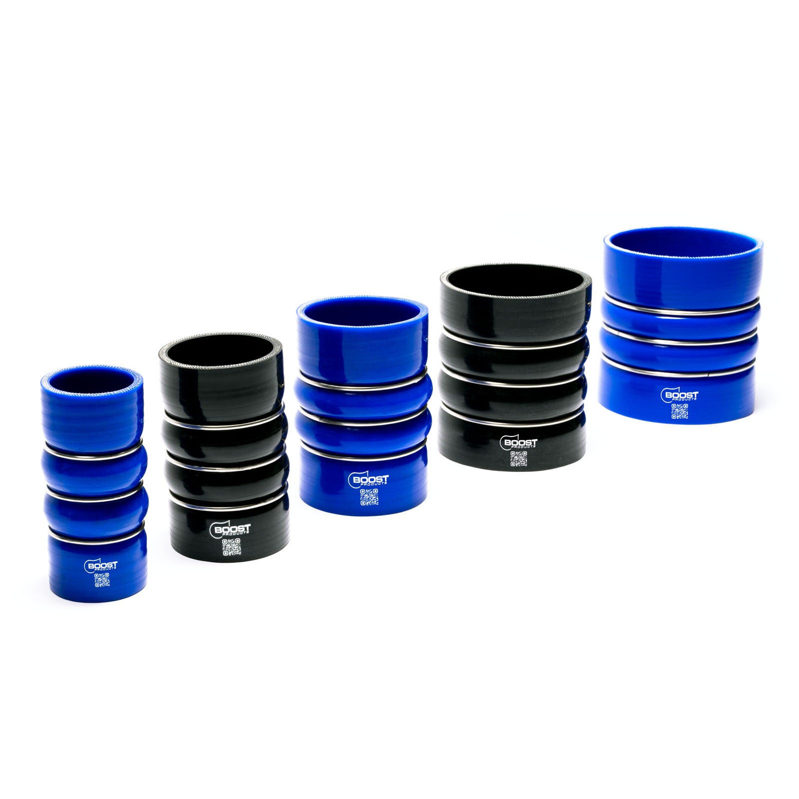 The hoses have until 38mm 3 layers of fabric and 4,3mm wall thickness. From 41mm there are 4 layers and 5,3mm wall thickness. They come with a small subtle BOOST products logo which proofs the silicone hoses' quality.