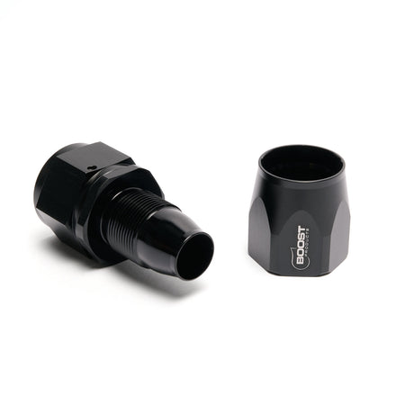 BOOST products fittings, hoses and thread adapters are suitable for a wide variety of applications such as use on oil, water, and fuel lines and are resistant to E85 and methanol. The fittings and adapters are CNC machined from 6061-T6 aluminum and conform to U.S. specification AN d JIC industry standards. The matching hydraulic hoses to the fittings are available in different versions (nylon or stainless steel braiding, also with reinforced insert or as PTFE version). The self-sealing system originates from the defense and aerospace industries and has been successfully used in motor sports for decades. Thanks to the unique screw connections, the hoses are tight and pressure-resistant up to 650 bar (depends on size and type) without the need for press tools. All BOOST products hydraulic hoses were E85 and Methanol resistent. The hose fittings are screwed together with the matching hydraulic hoses.